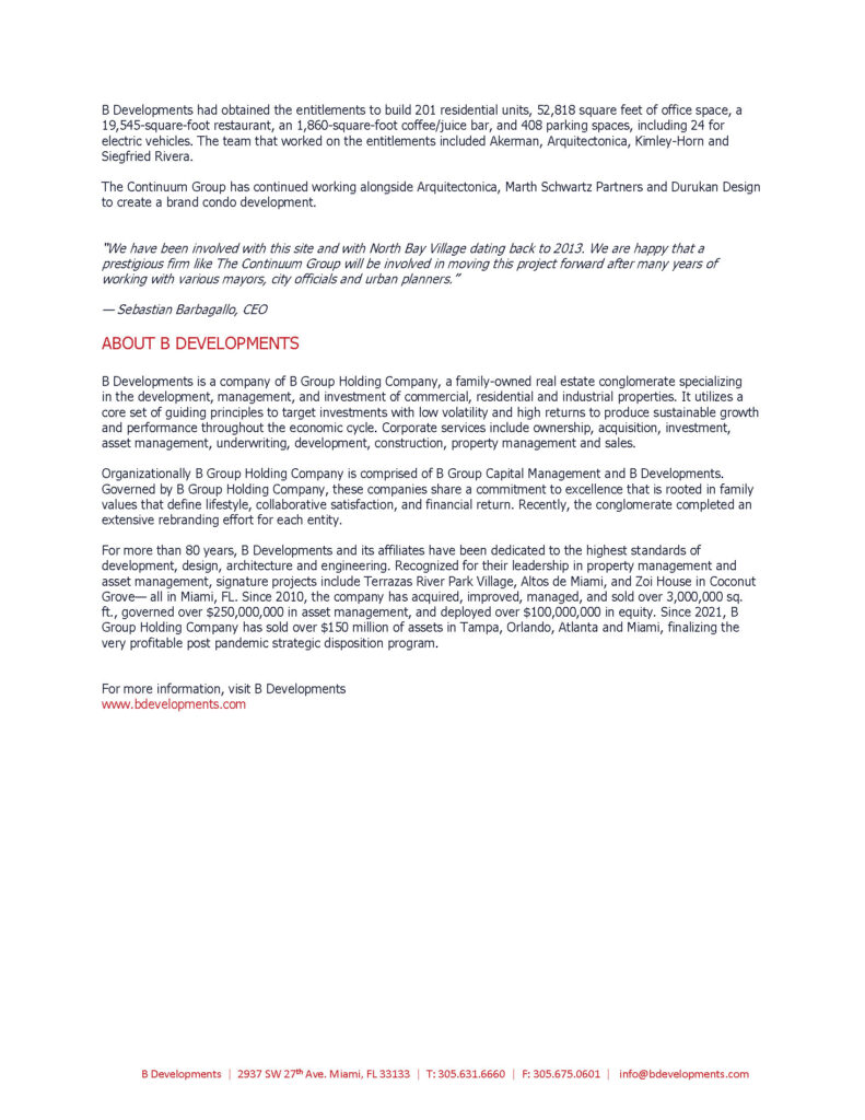 B Developments’ projects range from residential development of condos, multifamily and luxury single family homes to retail and office commercial assets.